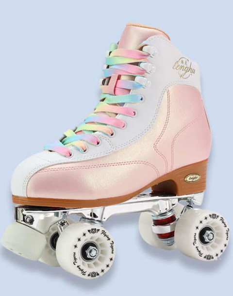 腾虎新款时尚超纤旱冰成人双排溜冰鞋防滑花式拼接色